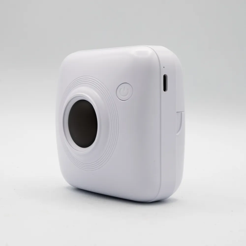 This mini monochromatic photo printer is small portable device that prints in black and white using and inkless thermal technology system.