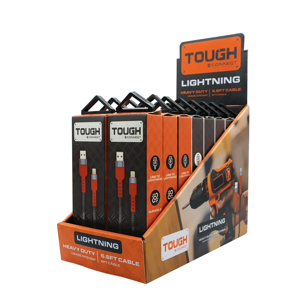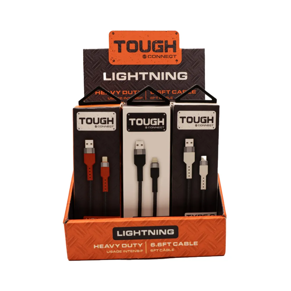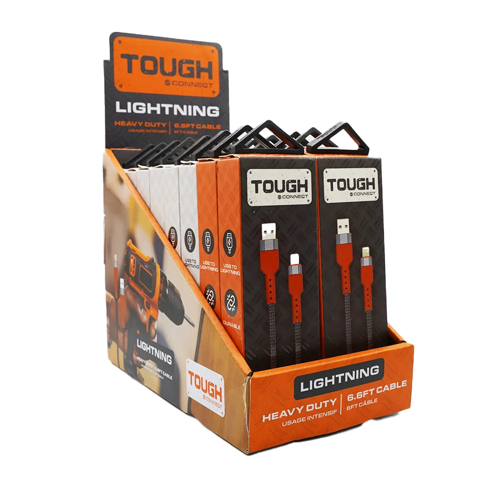 Tough 6.6ft Lightning Cable 16PCS/PDQ – BLACK/WHITE/ORANGE